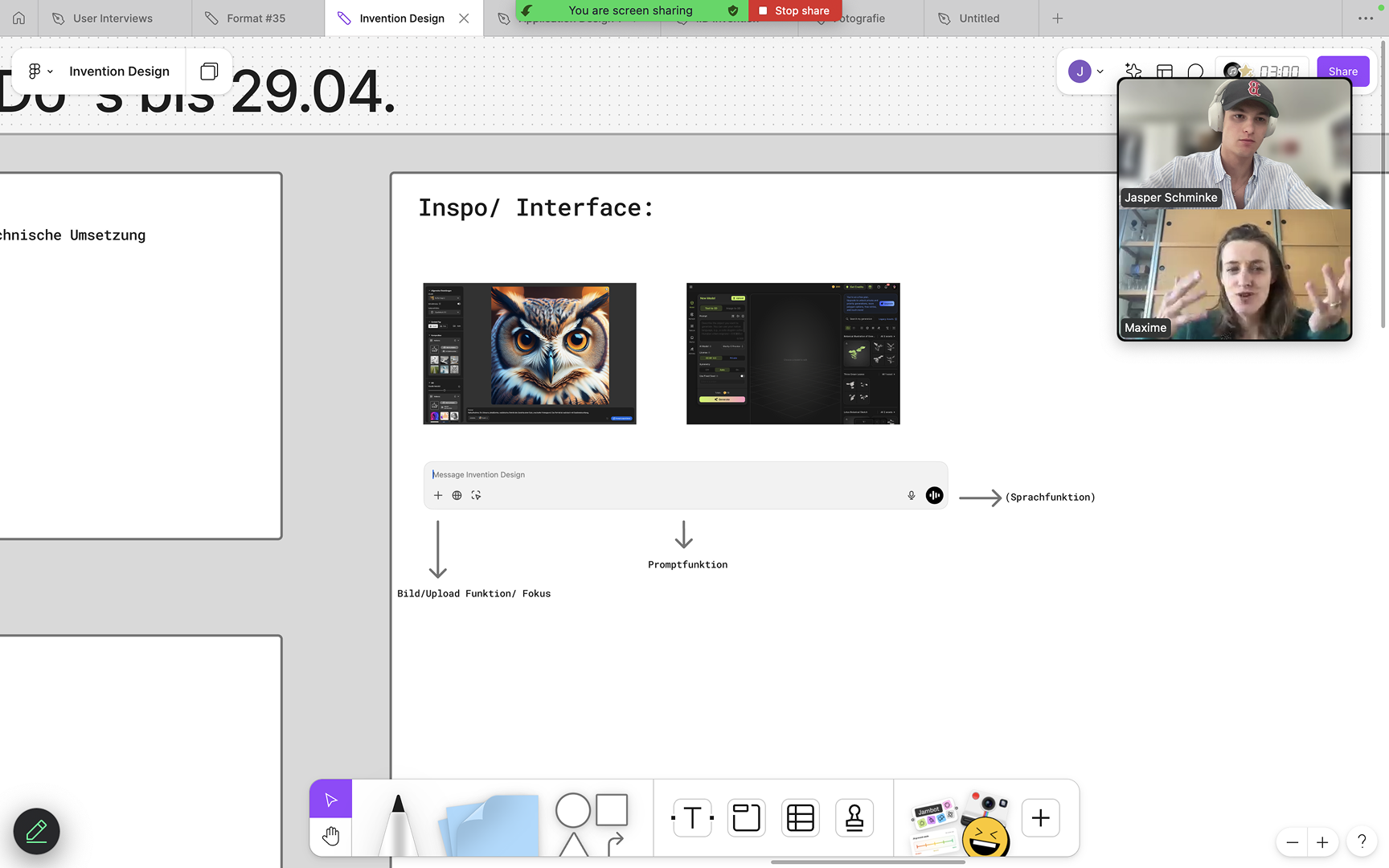 Initial interface inspirations (e.g., image upload, prompting, voice control) helped with domain definition.