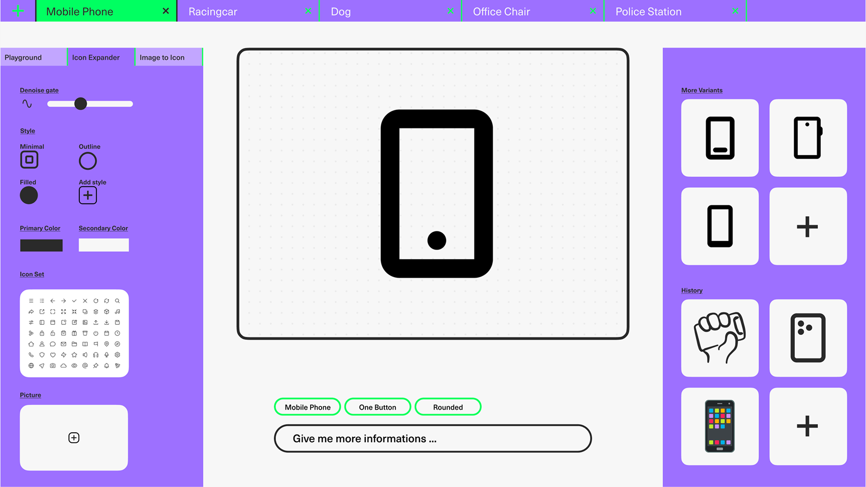 Aikon is an AI-powered icon generator tool that enables designers to quickly, consistently, and stylistically create missing icons.